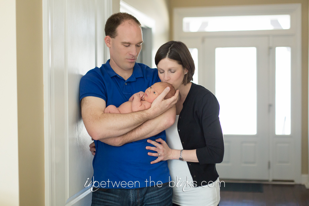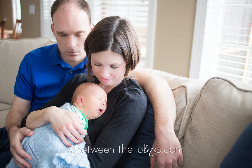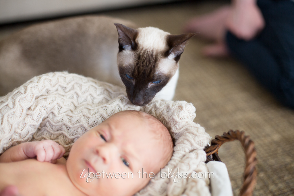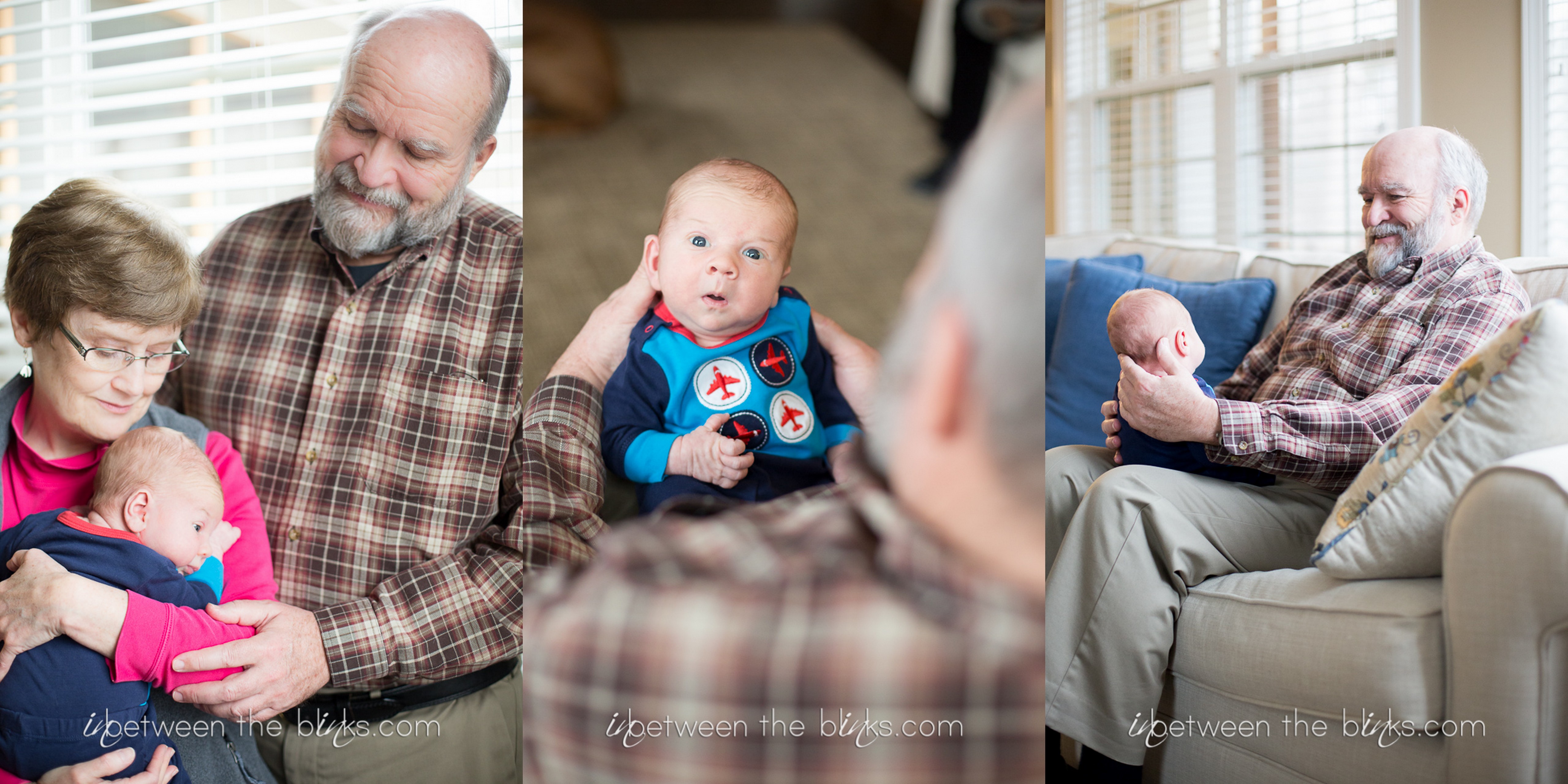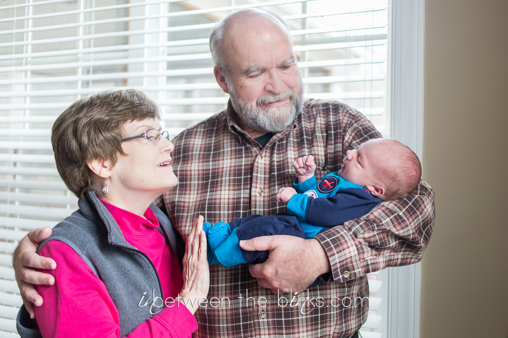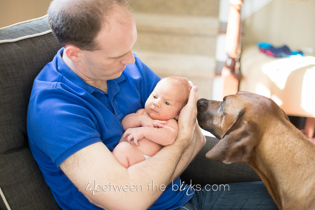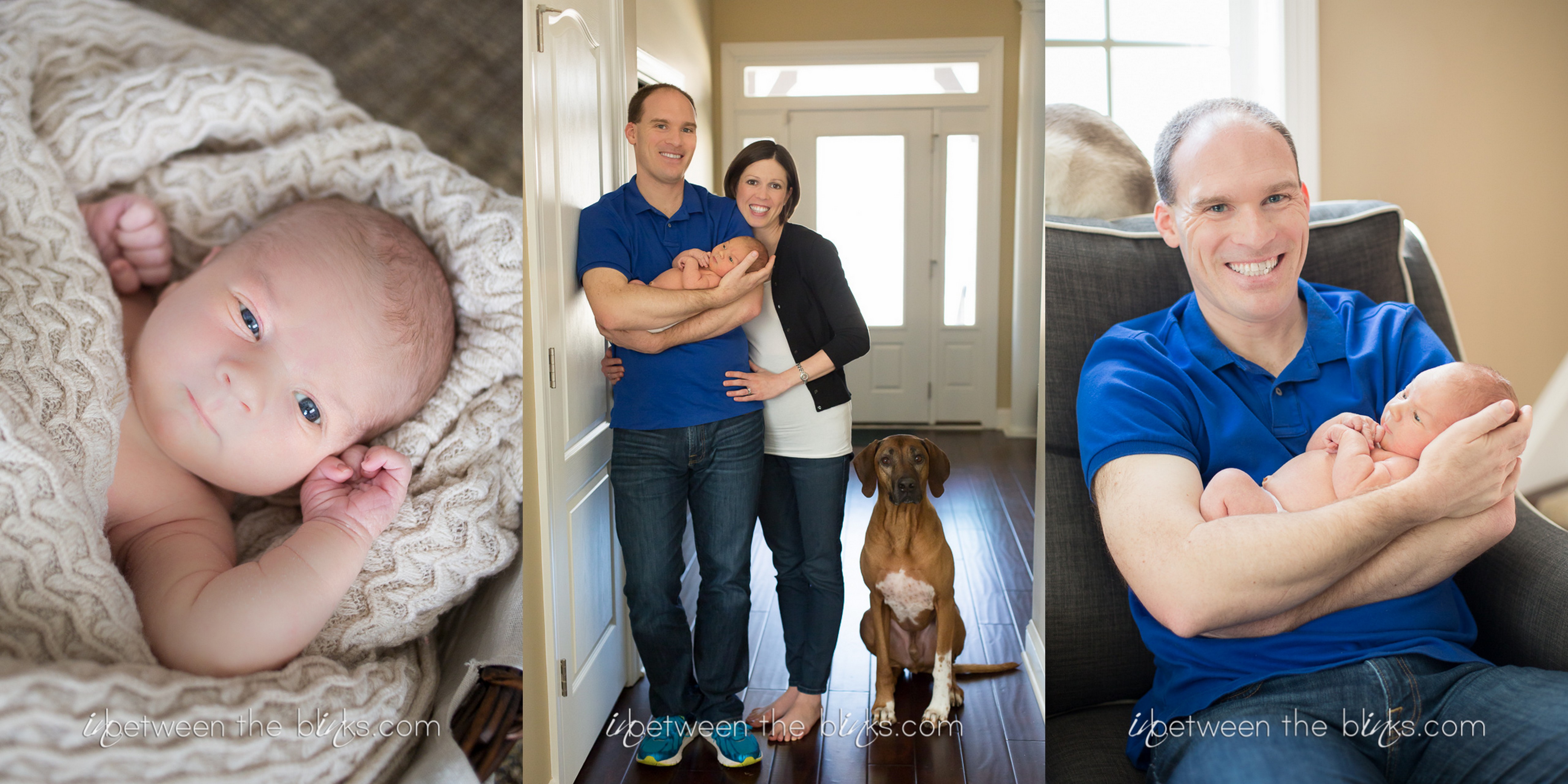 Sweet Ethan! This cutie was born January 30th at 9lbs 10oz. I photographed his four-legged siblings and parents in 2013 (see their session here). I was so excited when Amy emailed me at the end of 2014 with the news that they were expecting a baby boy! It is so much fun to see my clients’ families grow! We did both a maternity session and newborn session. I can’t believe with a cute and tiny a belly Amy had, Ethan was over nine pounds! The maternity session will be posted on the blog later this week, but for now, check out this handsome little man! Amy’s parents were in town for the session and it was so special to include them in the photos. Shawn’s parents came two weeks later and we also took some special photos with them as well! So far, the four-legged kids don’t seem to mind the new addition!