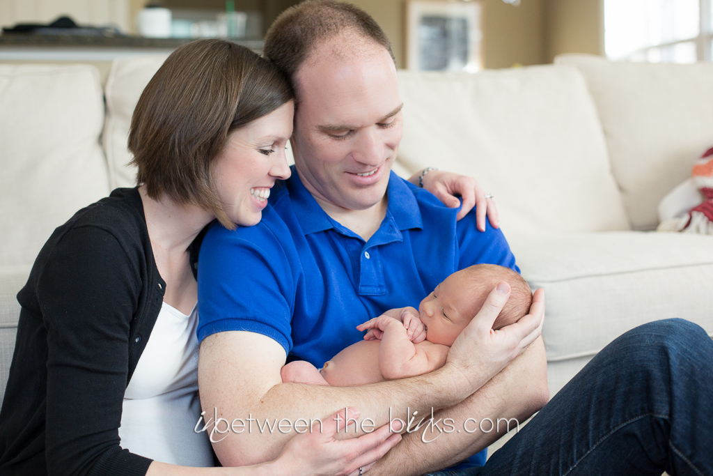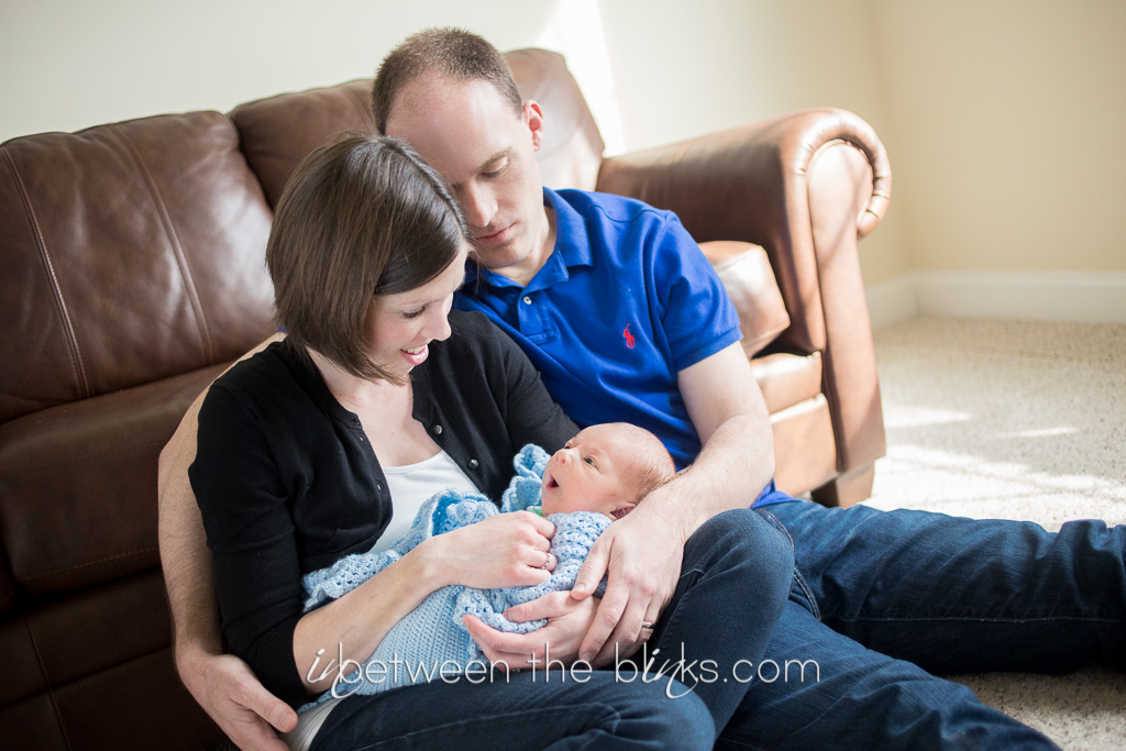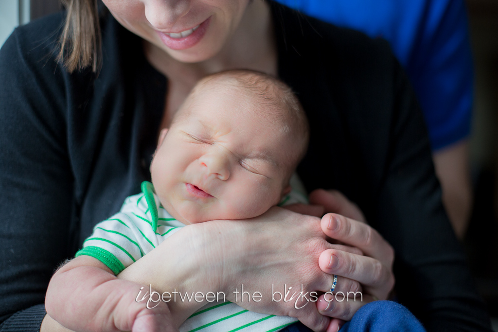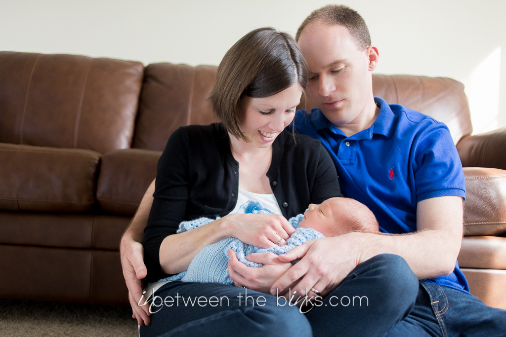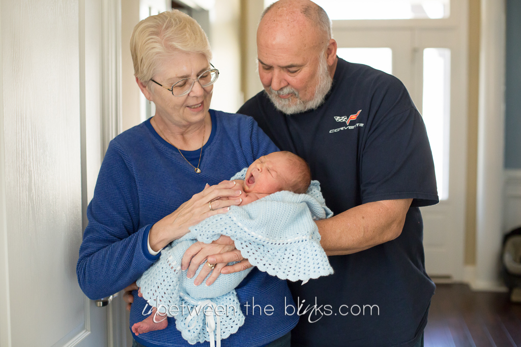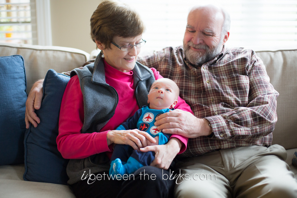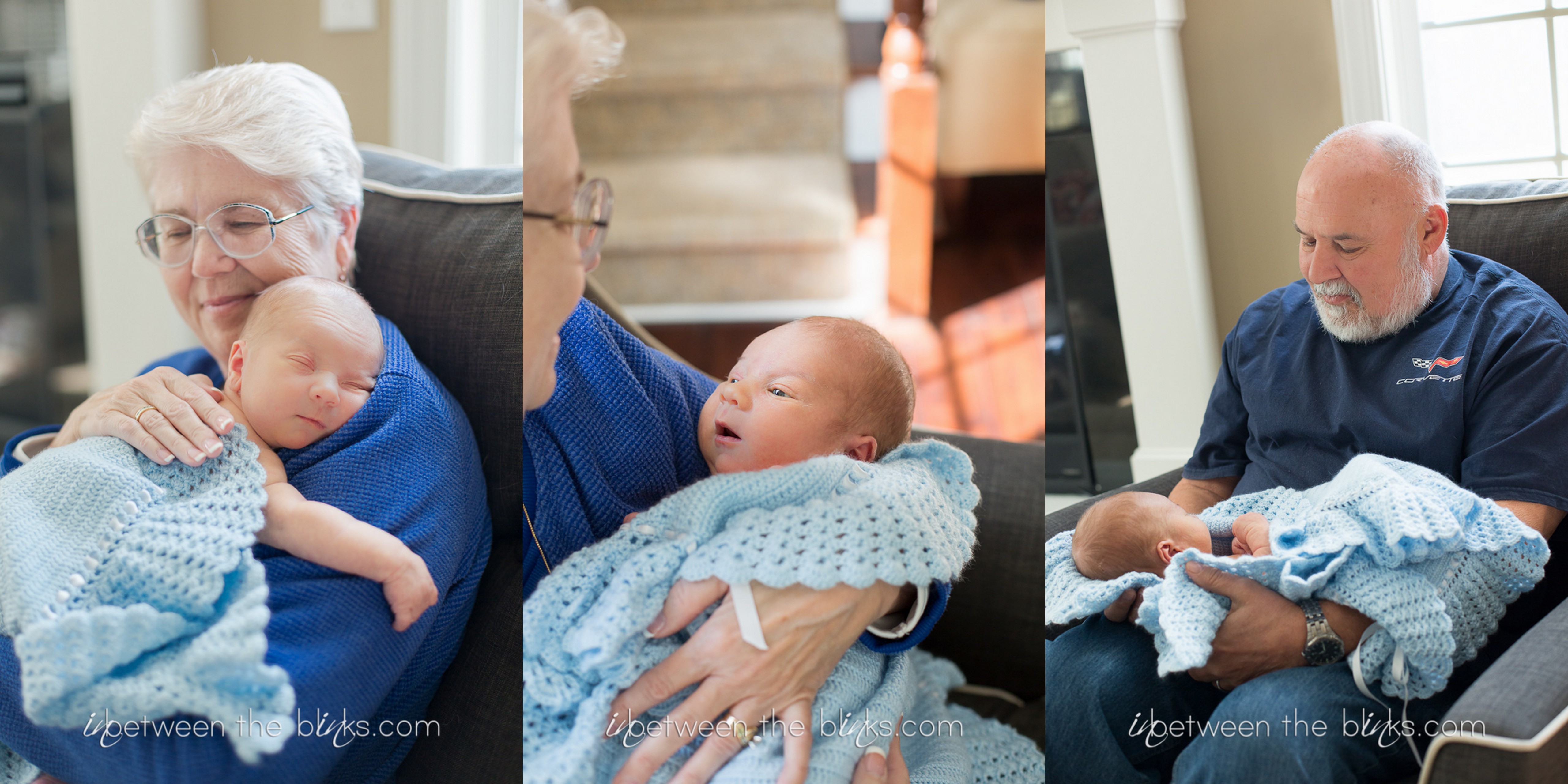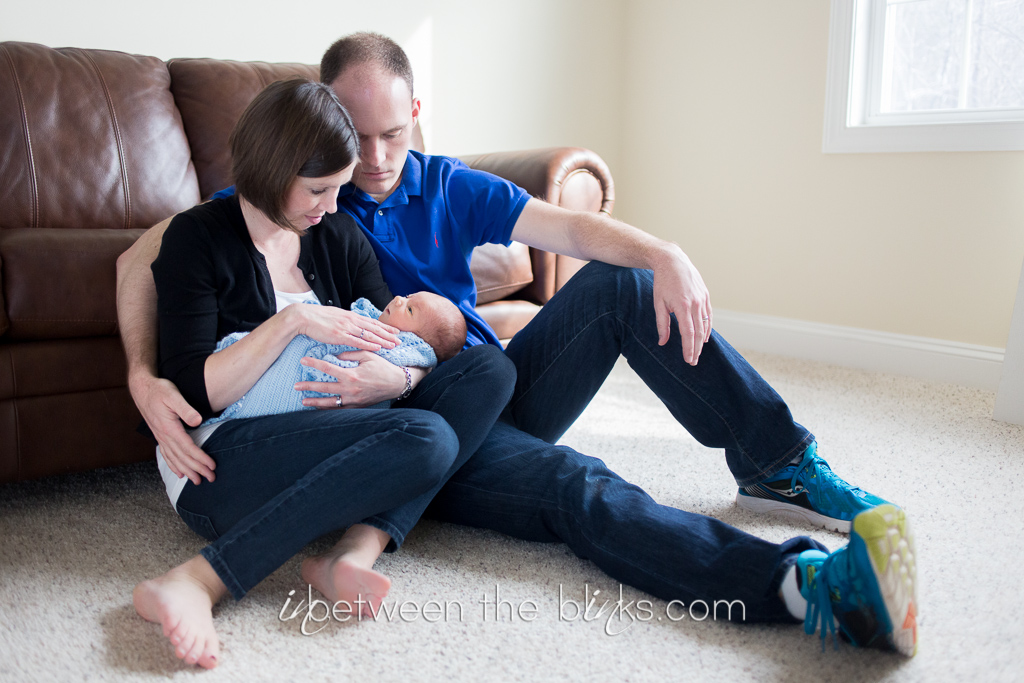 Sweet Ethan! This cutie was born January 30th at 9lbs 10oz. I photographed his four-legged siblings and parents in 2013 (see their session here). I was so excited when Amy emailed me at the end of 2014 with the news that they were expecting a baby boy! It is so much fun to see my clients’ families grow! We did both a maternity session and newborn session. I can’t believe with a cute and tiny a belly Amy had, Ethan was over nine pounds! The maternity session will be posted on the blog later this week, but for now, check out this handsome little man! Amy’s parents were in town for the session and it was so special to include them in the photos. Shawn’s parents came two weeks later and we also took some special photos with them as well! So far, the four-legged kids don’t seem to mind the new addition!