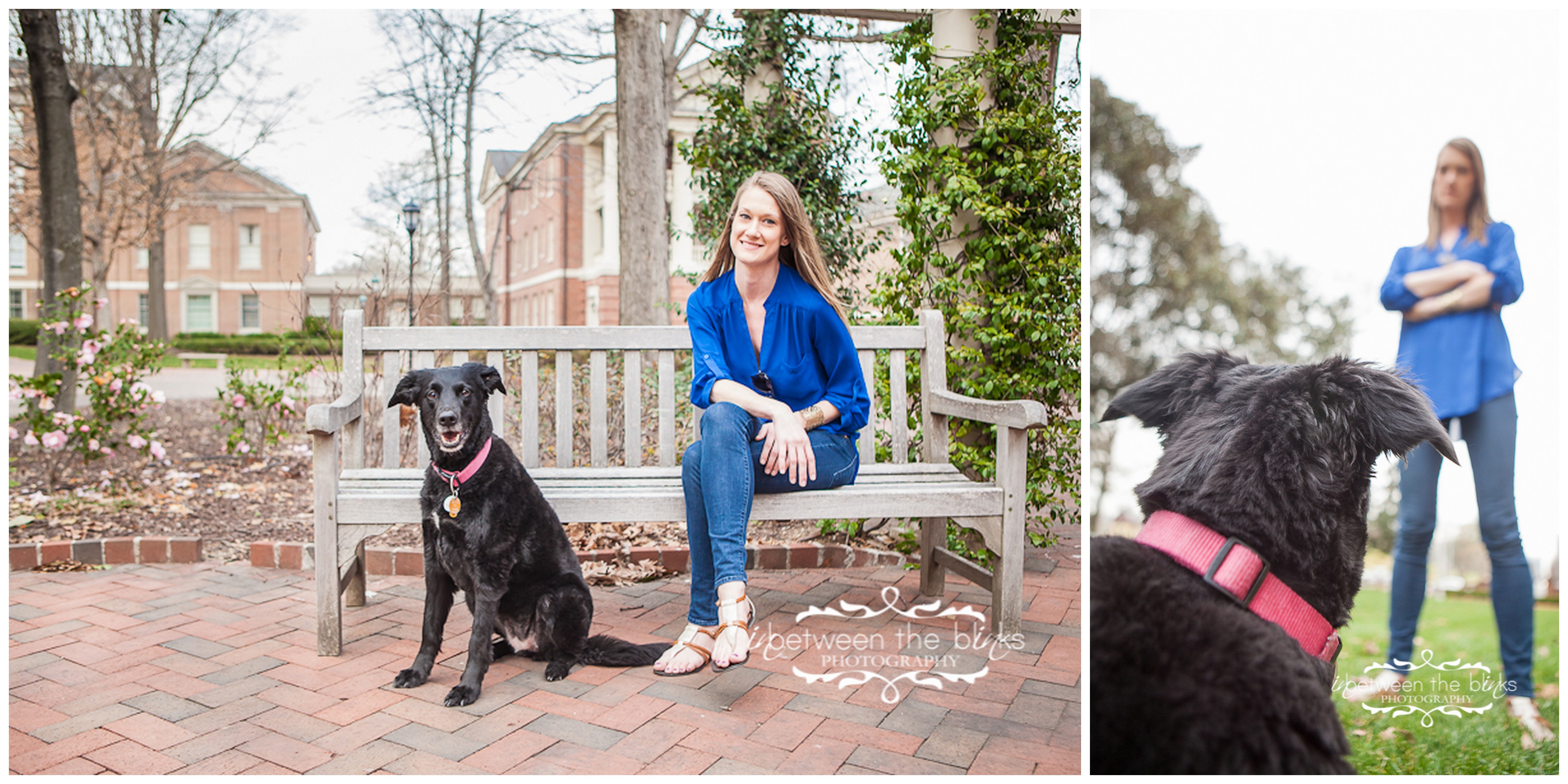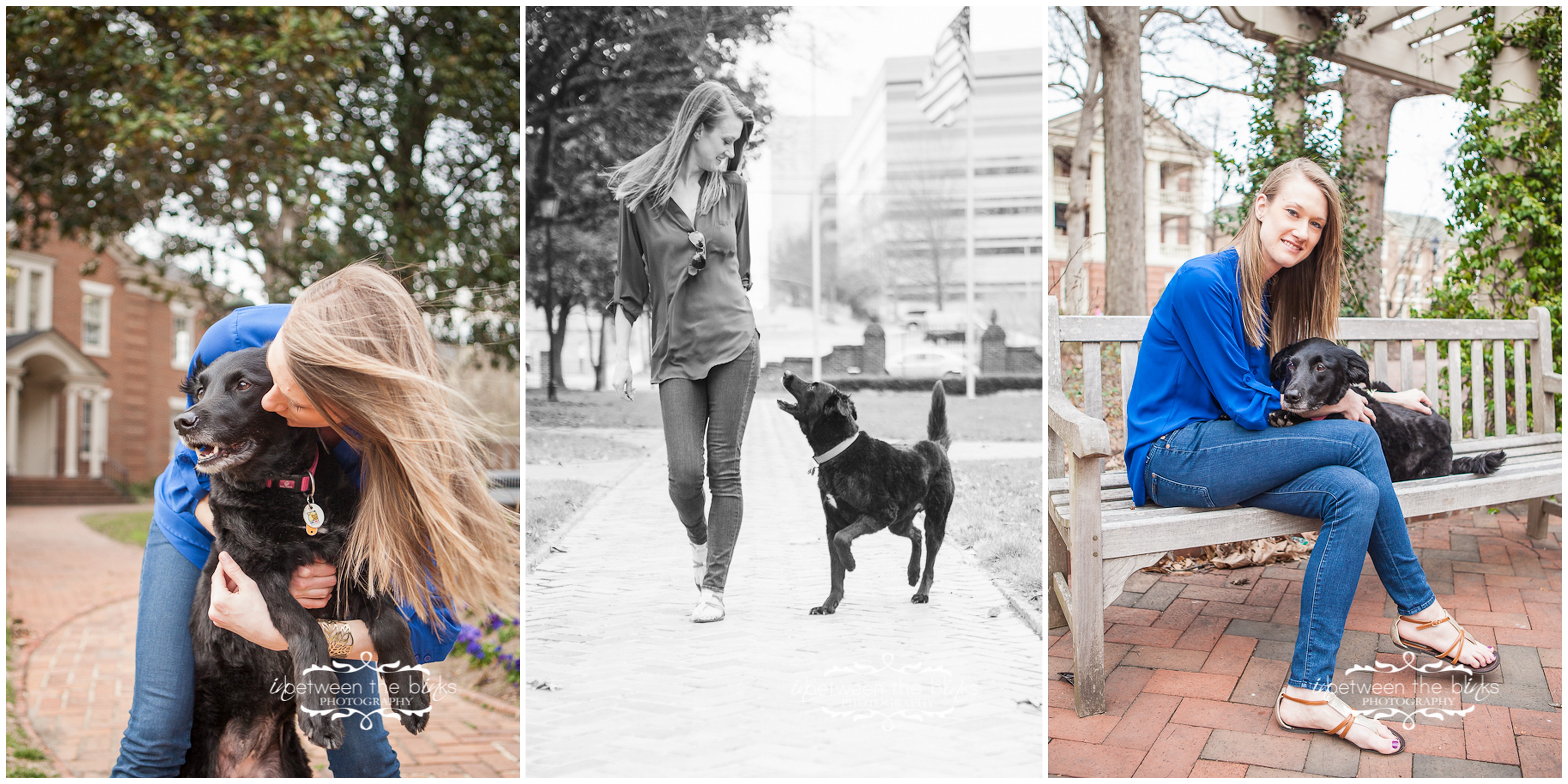 Oh Bailey. Bailey. Bailey! Check out this six year old flat coat retriever. She is an independent pup, very confident in herself and just adorable. I donated a photo session last fall for a local dog rescue and Lindsey’s mom won it in a silent auction! I was so excited to meet up with Lindsey and Bailey on the campus of her Alma Mater, Peace Collage (now William Peace University). Lindsey says, “Bailey and I are very similar, she takes after me. We are best friends, I adore her and she secretly adores me. [We are] both very particular and love spending time together.”