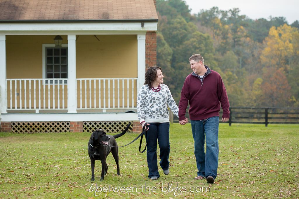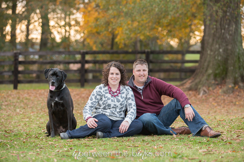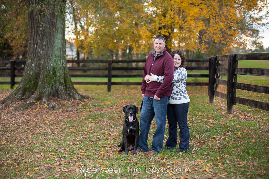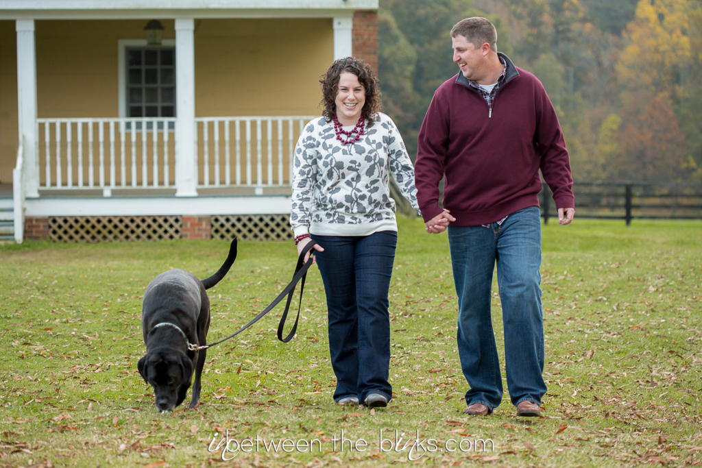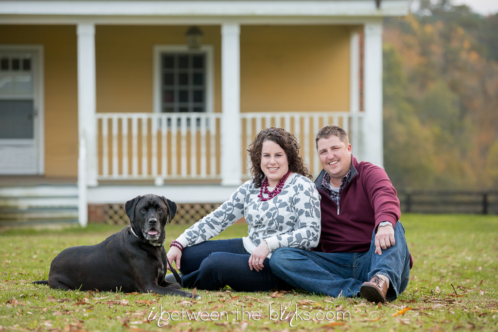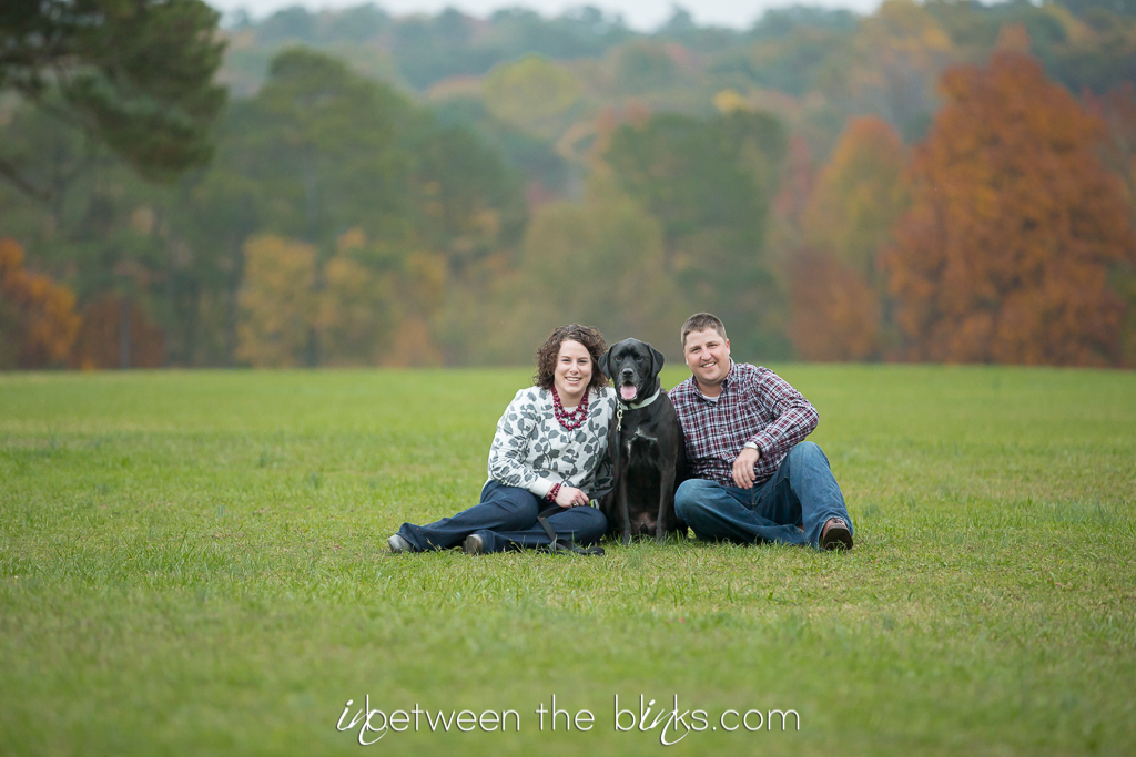 Holly Springs Engagement Session – I was so excited to photograph Breslin, Leslie and Joe at a non-athletic event! hehe I’ve been photographing this sweet trio for several years at the SPCA K93K and Santa Paws 5K. Joe even had me play a role in popping the question when he proposed at last year’s Dog Walk! As part of the proposal, he also purchased a gift certificate for engagement photos! Men, take note.