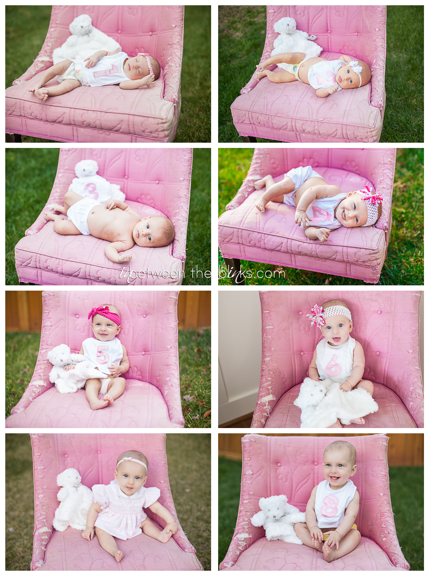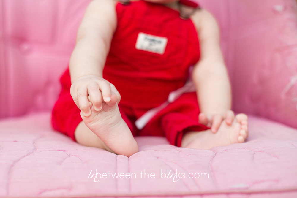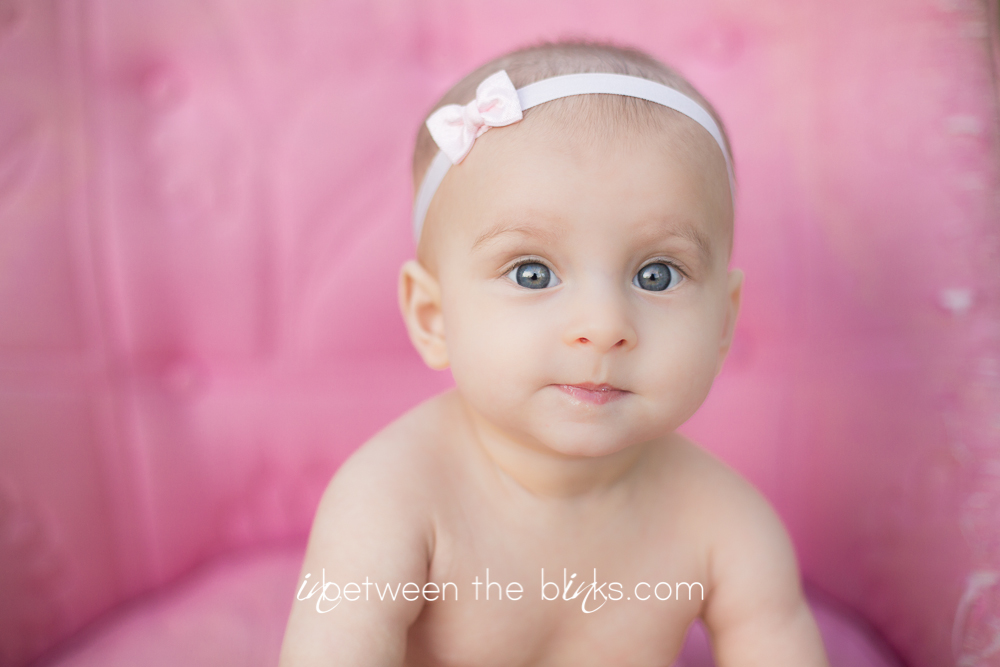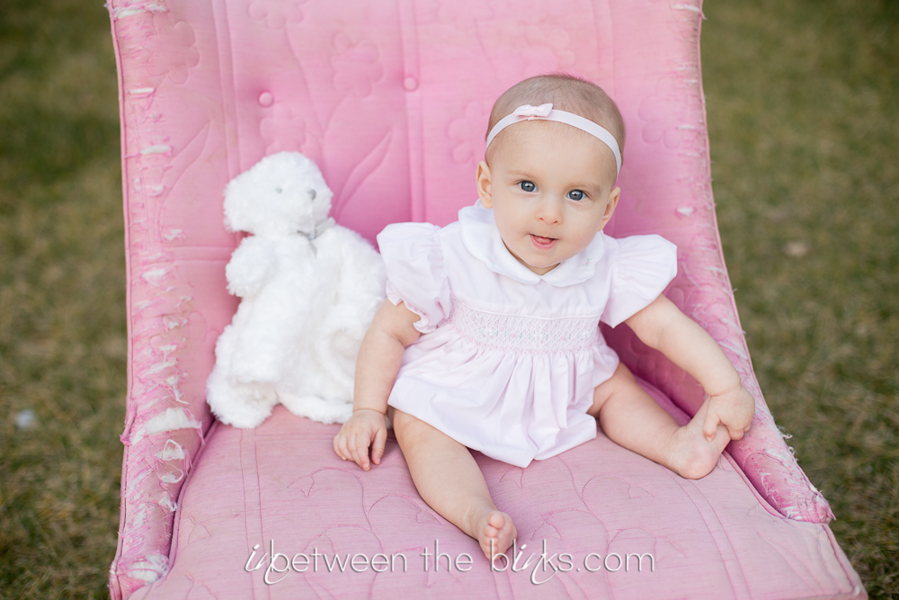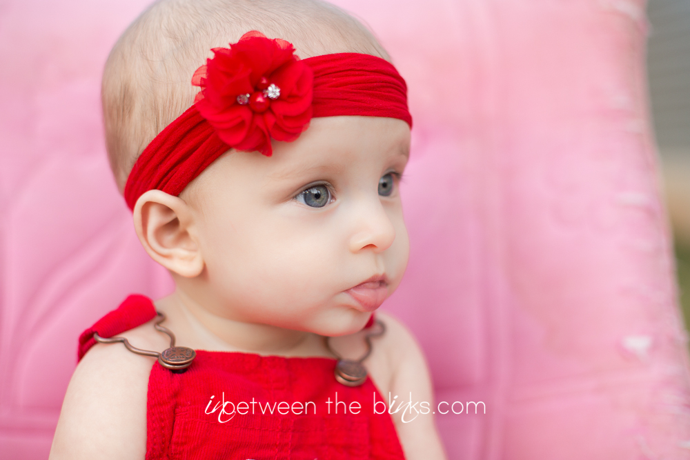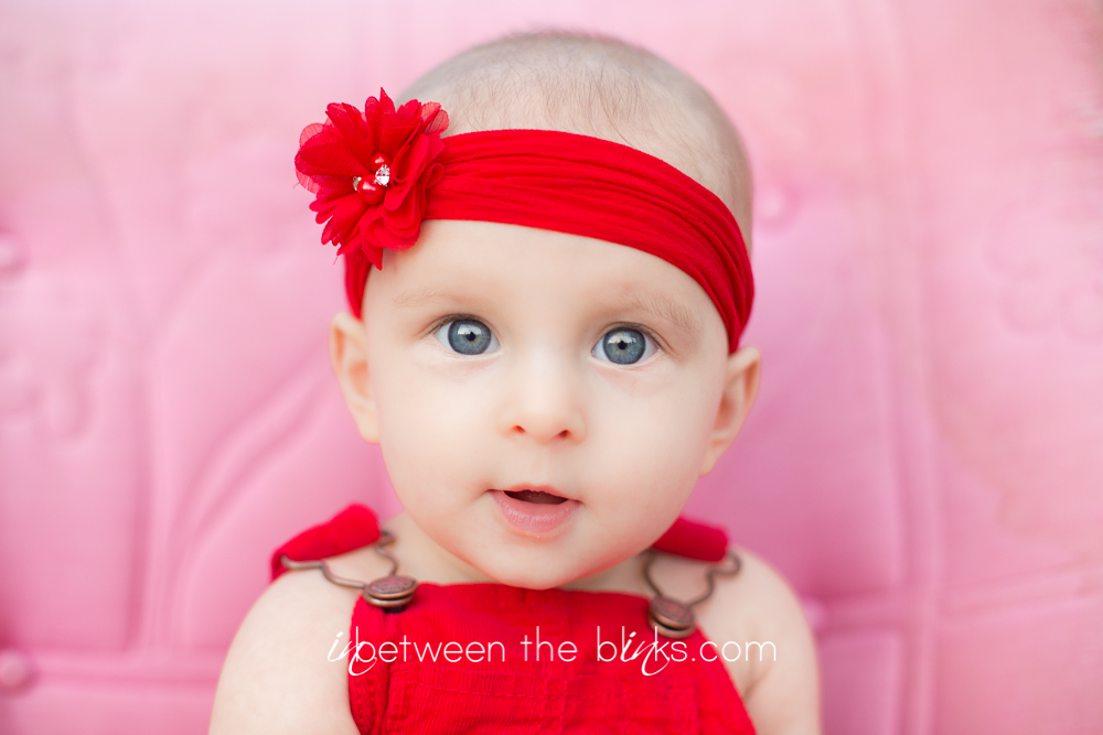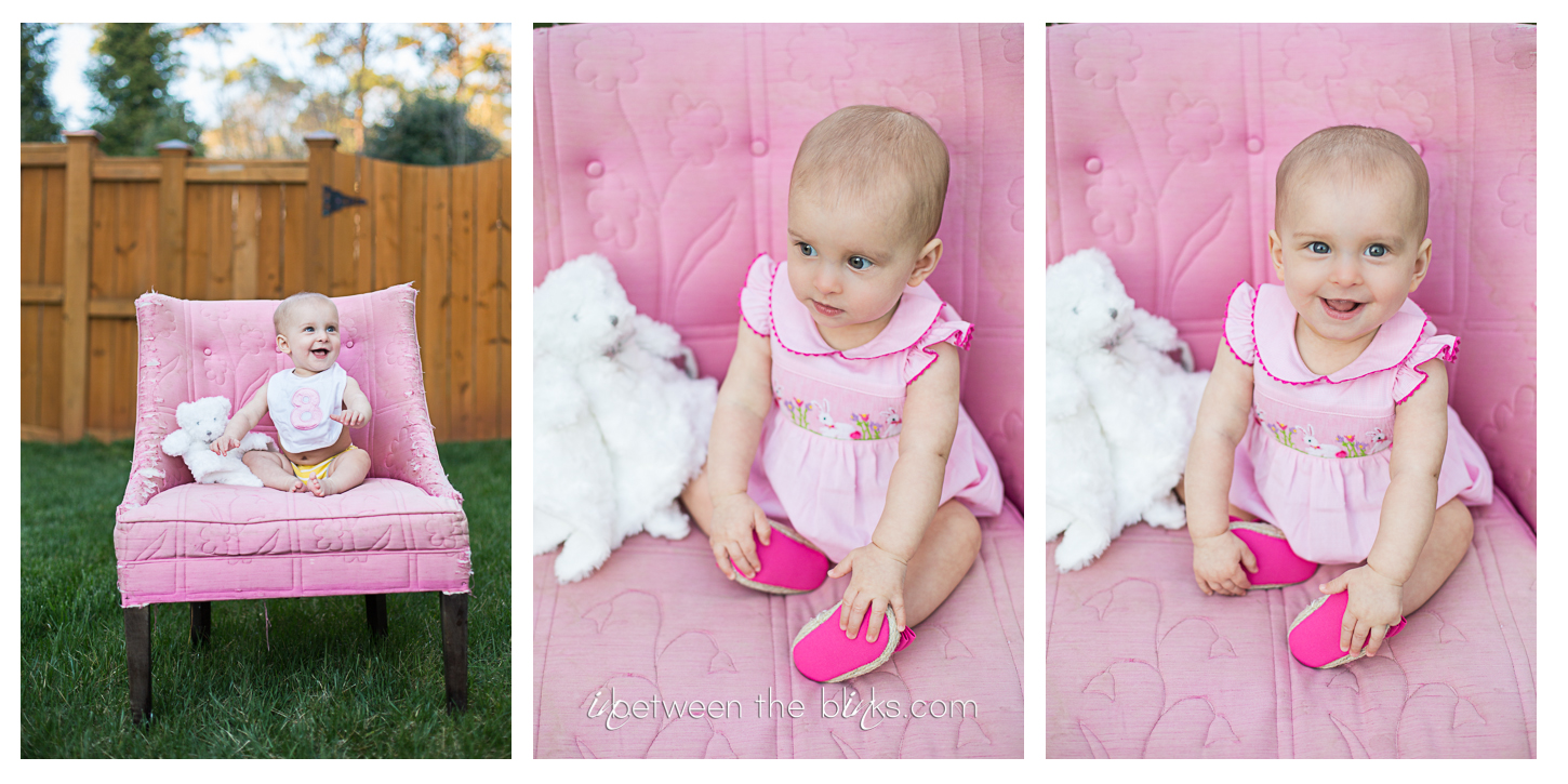 So I fell behind in posting Claire’s 7month photos so you get double the cuteness with a look at her seven and eight month photos! She really is getting so big!  She started sitting up on her own at about five and a half months. She’s just now starting to figure out the first steps to crawling. Which is a-ok with me.  I like not having to chase her around yet!