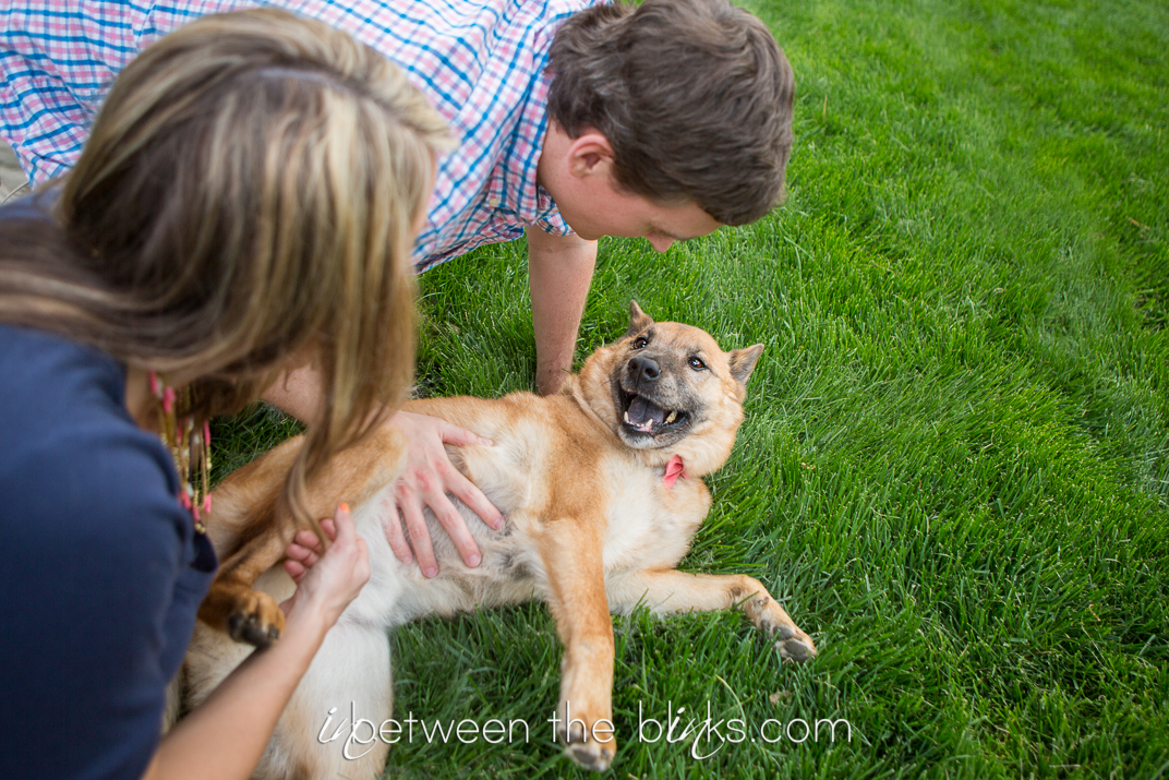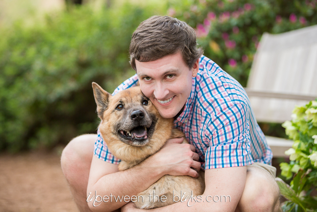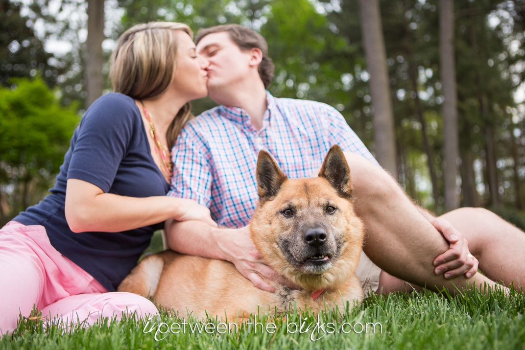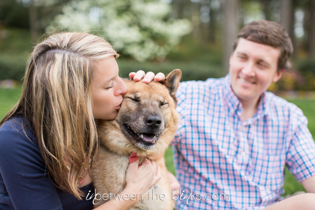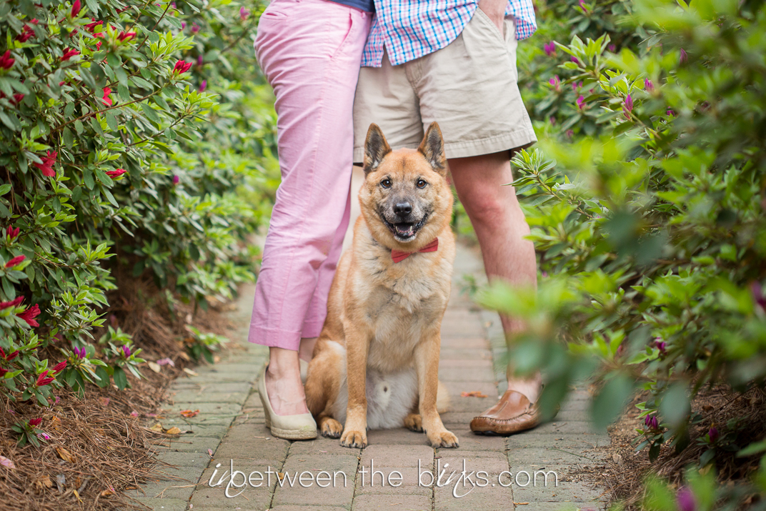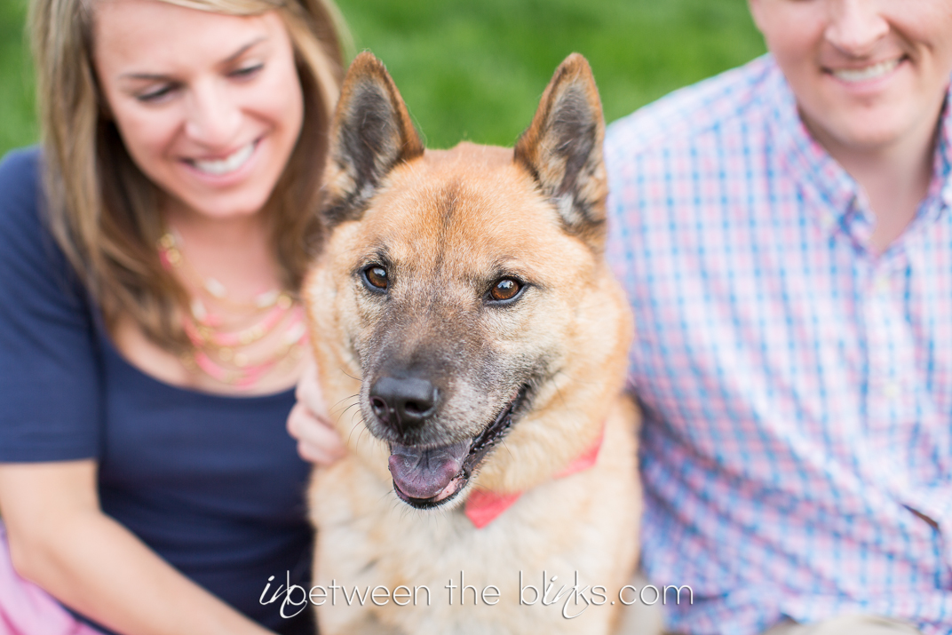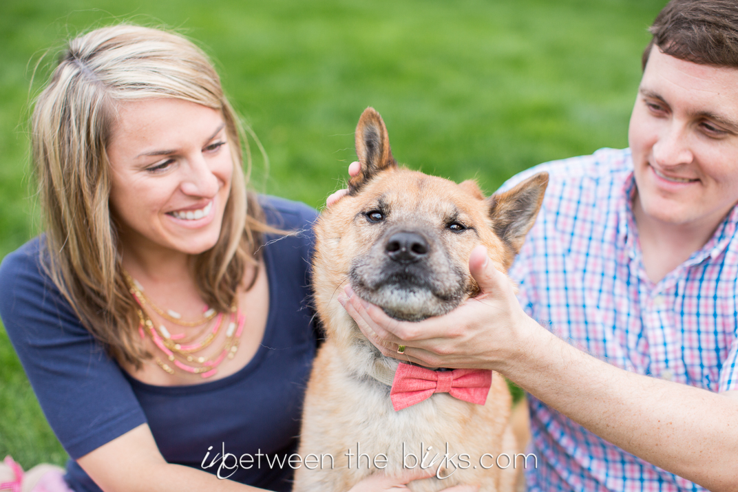 Cooper is an eight-year-old chow/shepherd mix. He had two bow ties that perfectly matched Allison and Chris’s pink and navy outfits! Definitely great inspiration for couples planning what to wear for you InBetween the Blinks session!