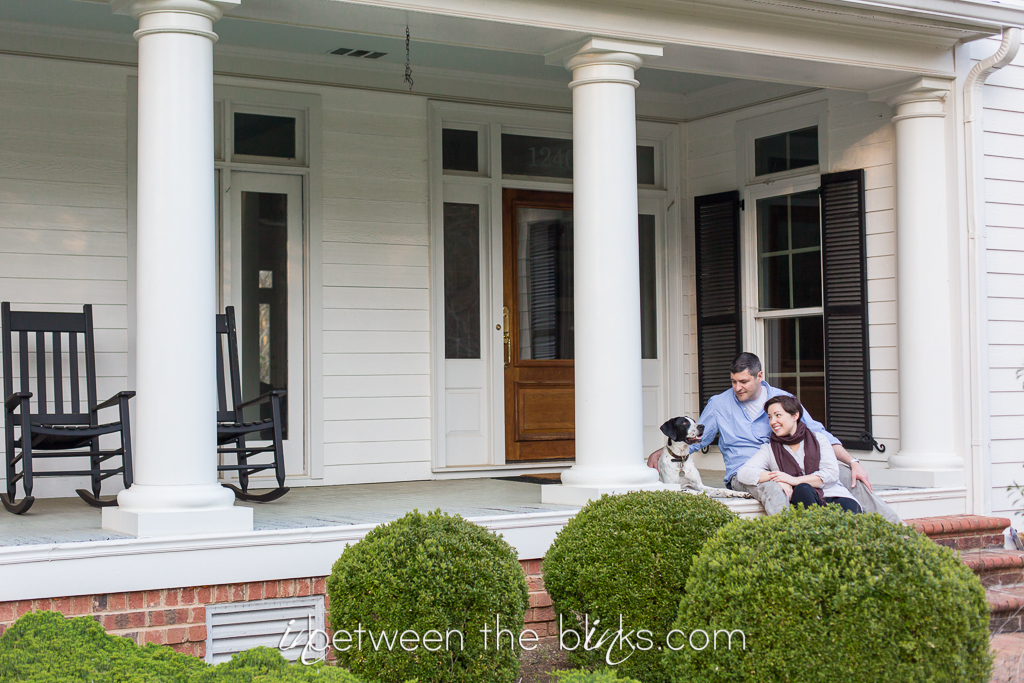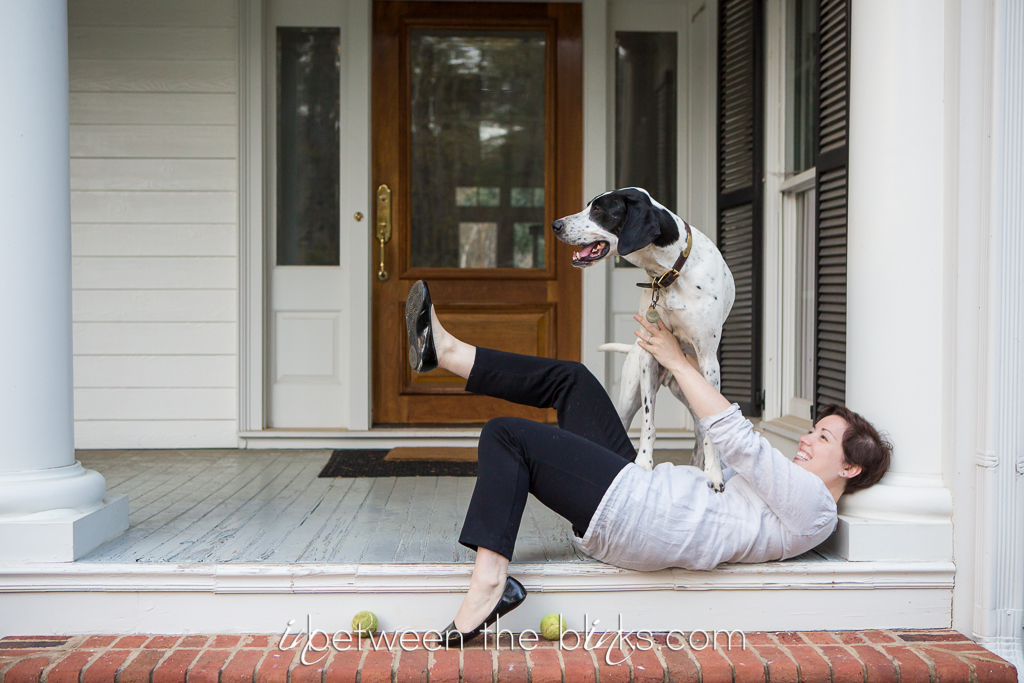 Now on to the photos. I was so giddy with excitement when Laura sent me a photo of their gorgeous home! We started off in the wooded area next to their house and I could have photographed them on the porch for hours! Henry is so stunning and I love the happiness this sweet family emanates! And Henry standing on top of Laura? Hilarious! Apparently, that’s their thing! 🙂