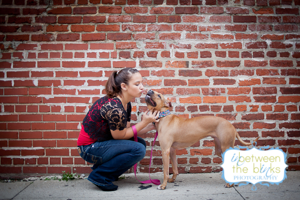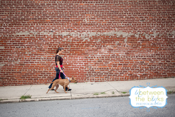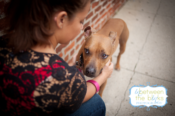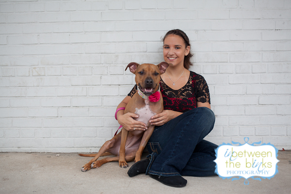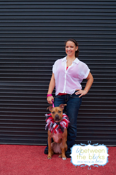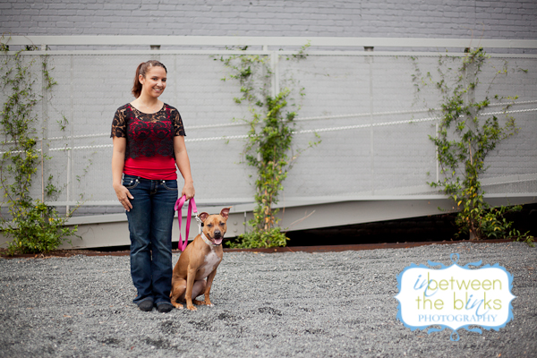 I first met Lynn and Kesha last year! Lynn’s mom Stacey found me on facebook and wanted to get some photos of her daughter and grand-dog, Kesha! I met them at NC State where Lynn attends the Vet School. Keshas was decked out in several outfits for the shoot and was just sooooo cute. I was very excited for our shoot almost one year later because Kesha was such a great model. Well…Kesha must have just been sooooooo thrilled with her photos last year that she just couldn’t contain her excitement. She was a wild woman when I walked up and I don’t think she ever quite calmed down. LOL But when she wanted to pose…boy did she pose! Kesha is what many of us would call a “pocket pit.” She’s maybe 40 lbs and just a cute, lean little pibble that you want to just put in your pocket and carry around. Lynn is an equal opportunist when it comes to her college allegiance. She grew up a Tar Heel and still loves UNC, but has fully embraced her Wolf Pack pride as you can see by her wardrobe choices and Kesha’s matching outfit! The black garage door and red carpet were a perfect match! And all of these different backgrounds were within on corner of each other in downtown Raleigh! Also, shout out to The Positive Pit Bull. I donated this photo shoot as part of their holiday auction last year! Stacey made sure she was the top bidder! I’m so glad she was…and even more thrilled that she hopped in front of the camera for a few shots!