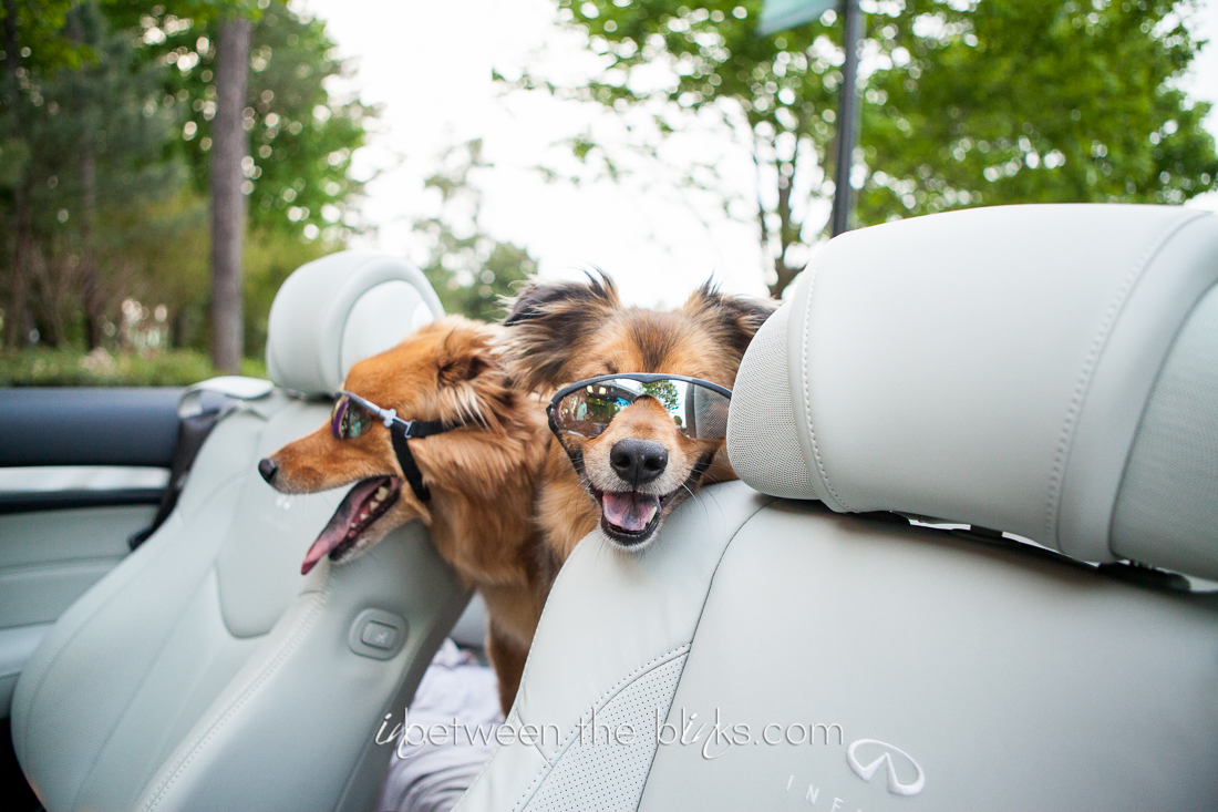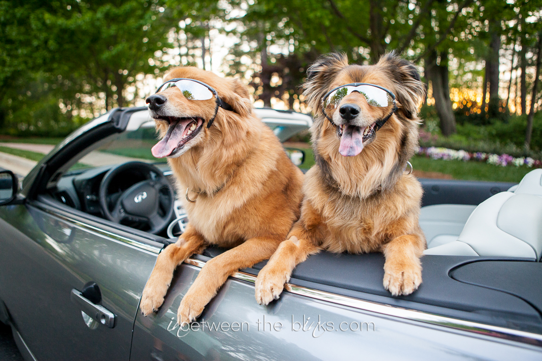 These pups definitely make my “all time favorite photo” list with this first shot of them in mom’s convertible sporting their shades! Seriously!?!?! Ahhhhh! The girls only tolerate the shades for the car ride and they sure look good doing so!