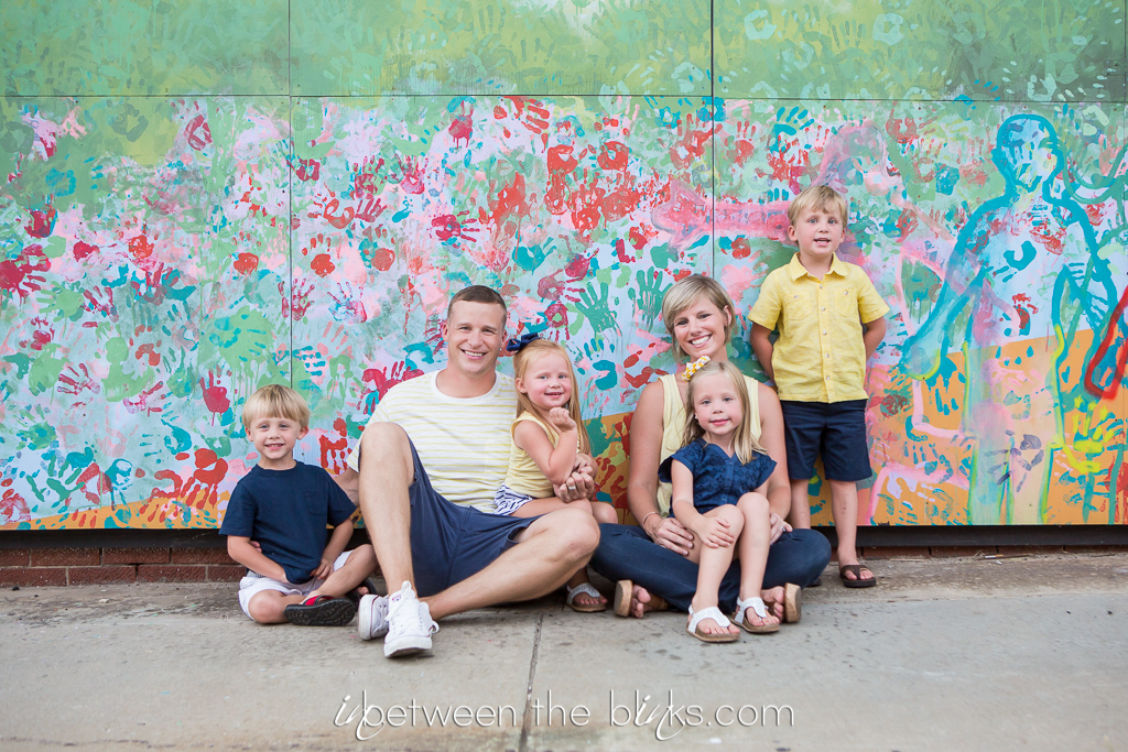 Gavin (left) originally did not want to participate in the photo below. So when we finally convinced him to join, I pulled the best photo of him from this series and added him to this group shot below. It was actually really easy matching up the bricks since everybody had stayed in the same place when he jumped in. We had a ton of photos from this series and it was hard not to keep them all. Emma provided a lot of entertainment. The boys just wanted to go play with rocks.
