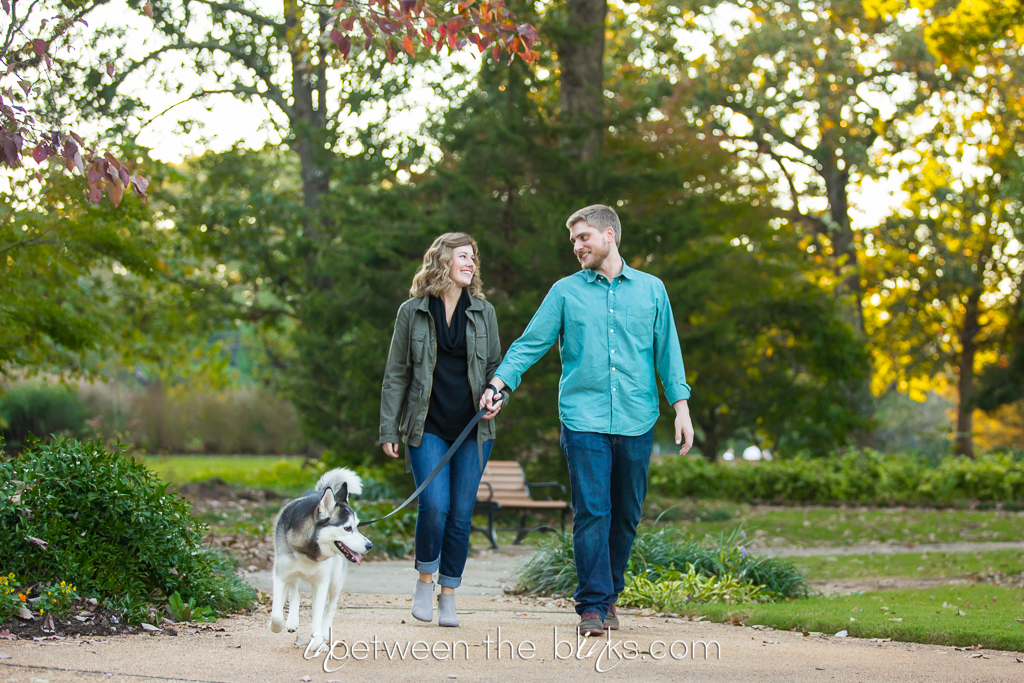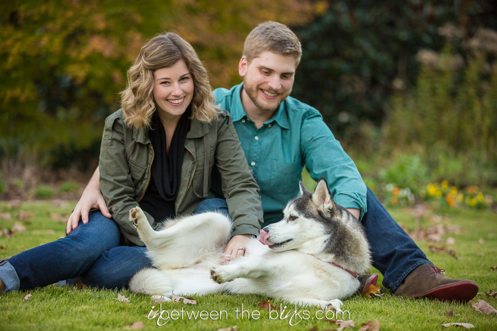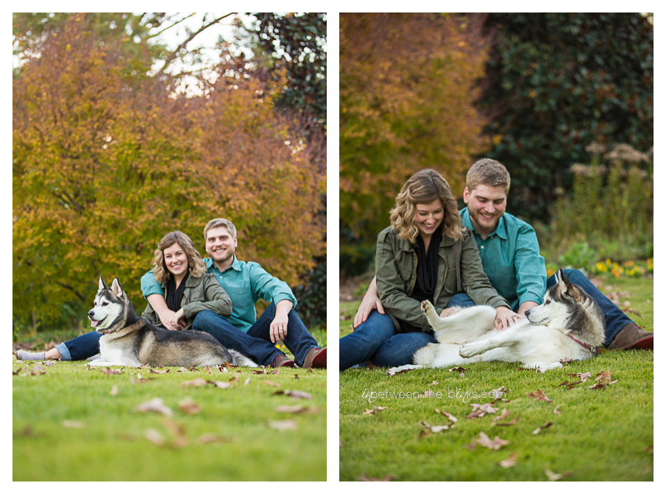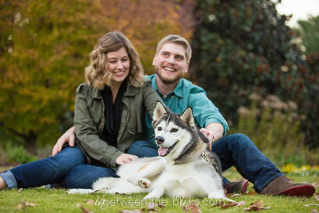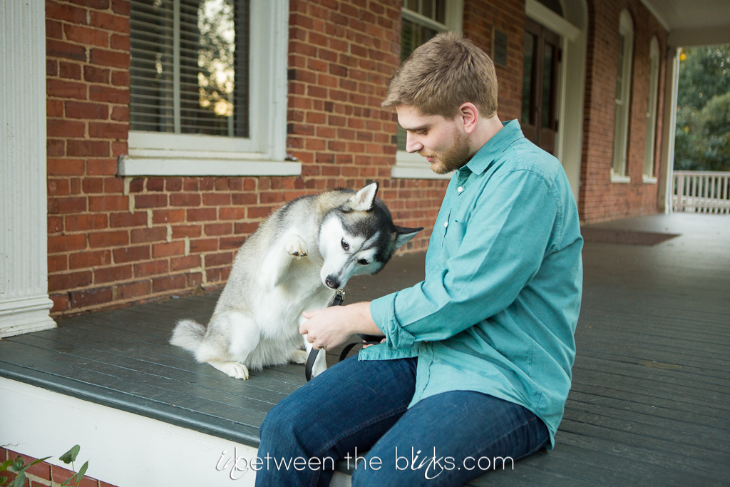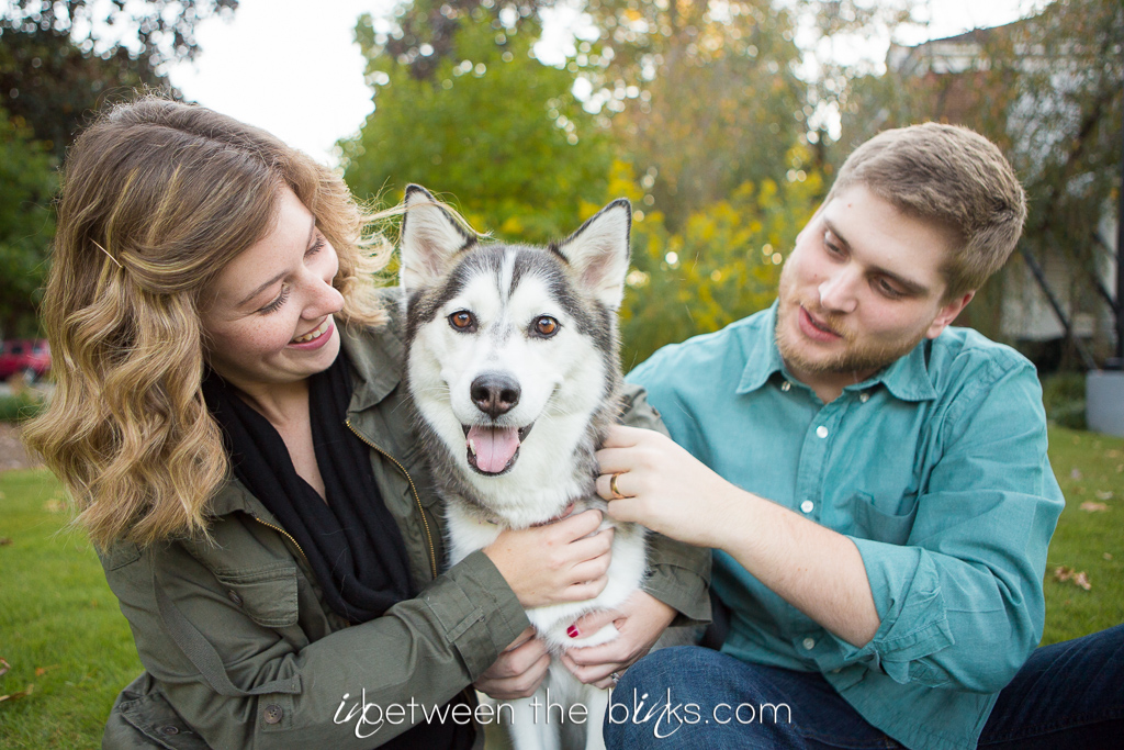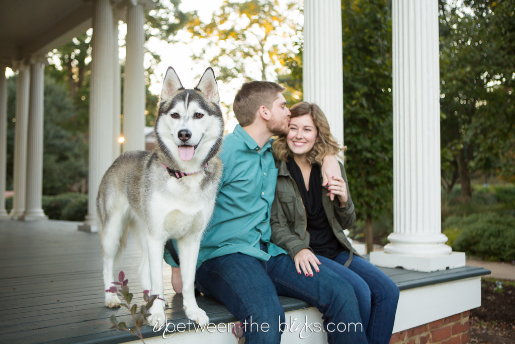 Meet Beautiful Luna the Husky! Andrew contacted me early in 2015 to purchase a gift certificate for his sweet wife Cait for her birthday. I had been anticipating our session ever since especially because I was able to meet Luna when I met Andrew to drop off the gift certificate! (I like to wrap them up in a nice pretty box and it means the men don’t have to do anything but present it!). After a few reschedules due to rain, we finally had a perfect evening for a fall photo session in Raleigh. Luna would definitely be considered “editorial” rather than “commercial” in the model world. Although she could easily do any ad campaign. She has an air about her that allows her to work the camera, but never actually look at the camera. But her good looks haven’t gone to her head. She is just as sweet as she is gorgeous! And the same goes for Andrew and Cait! What a joy it was to work with such a loving, radiant couple! Put all three of them together and I felt like I had been hired for a magazine shoot! 🙂