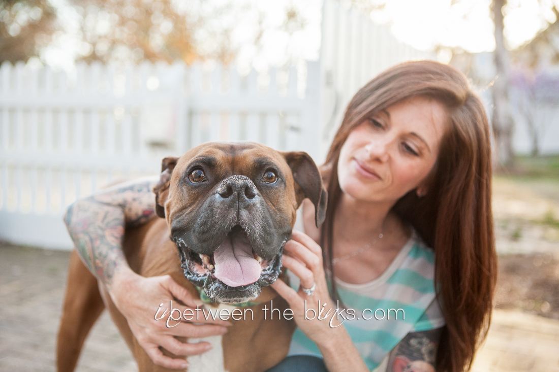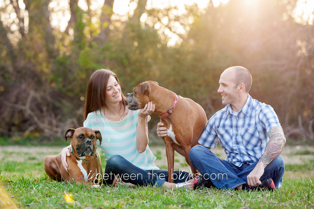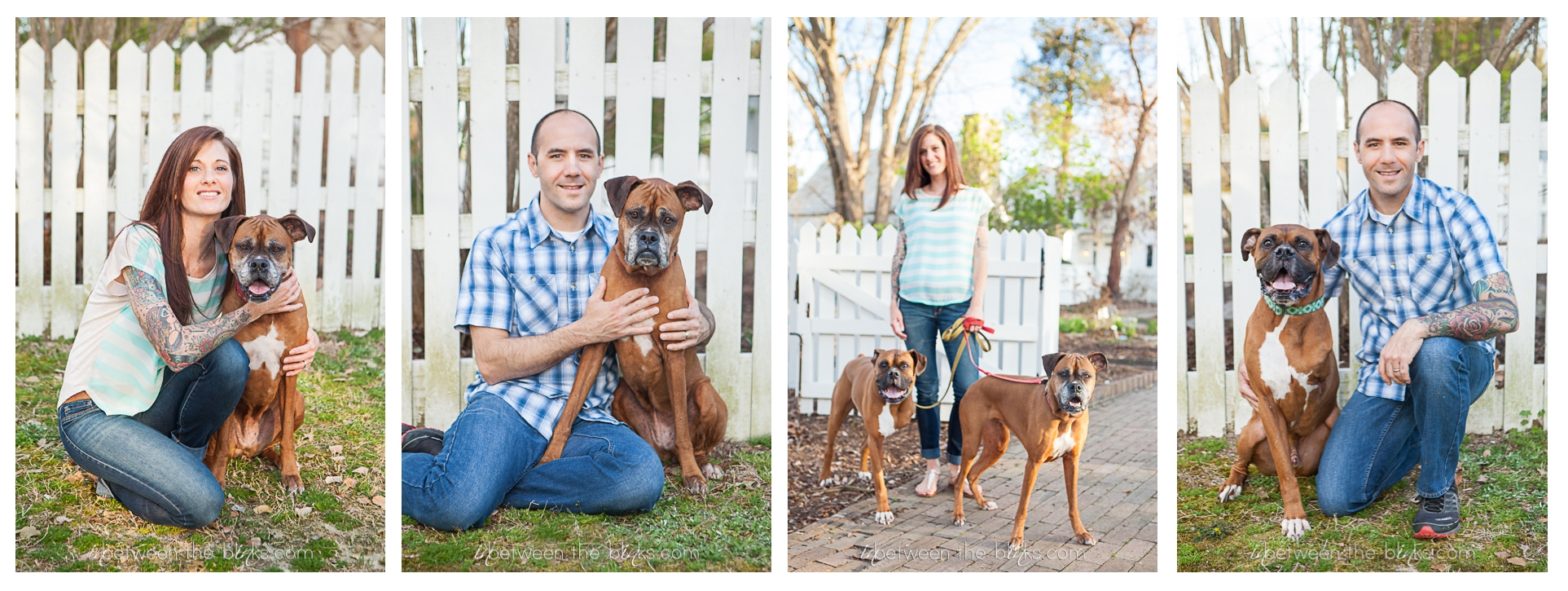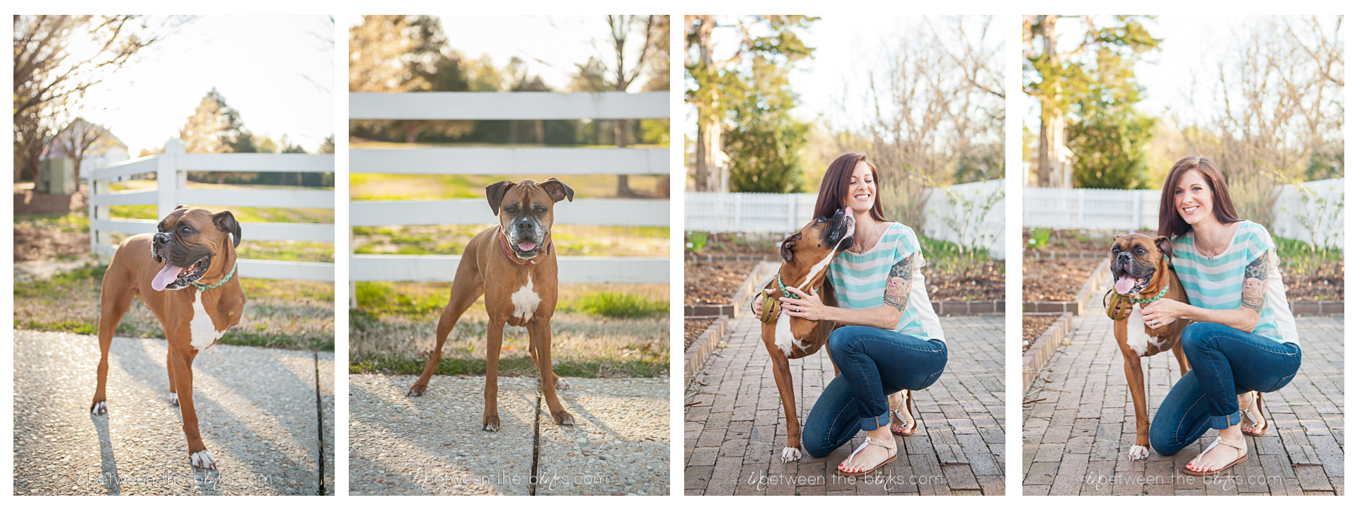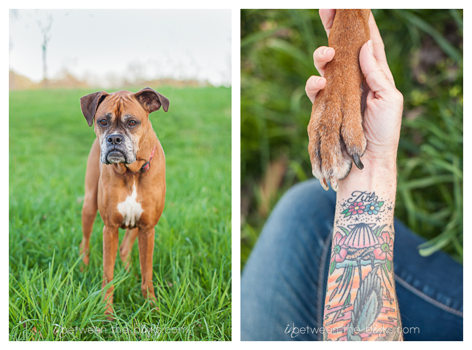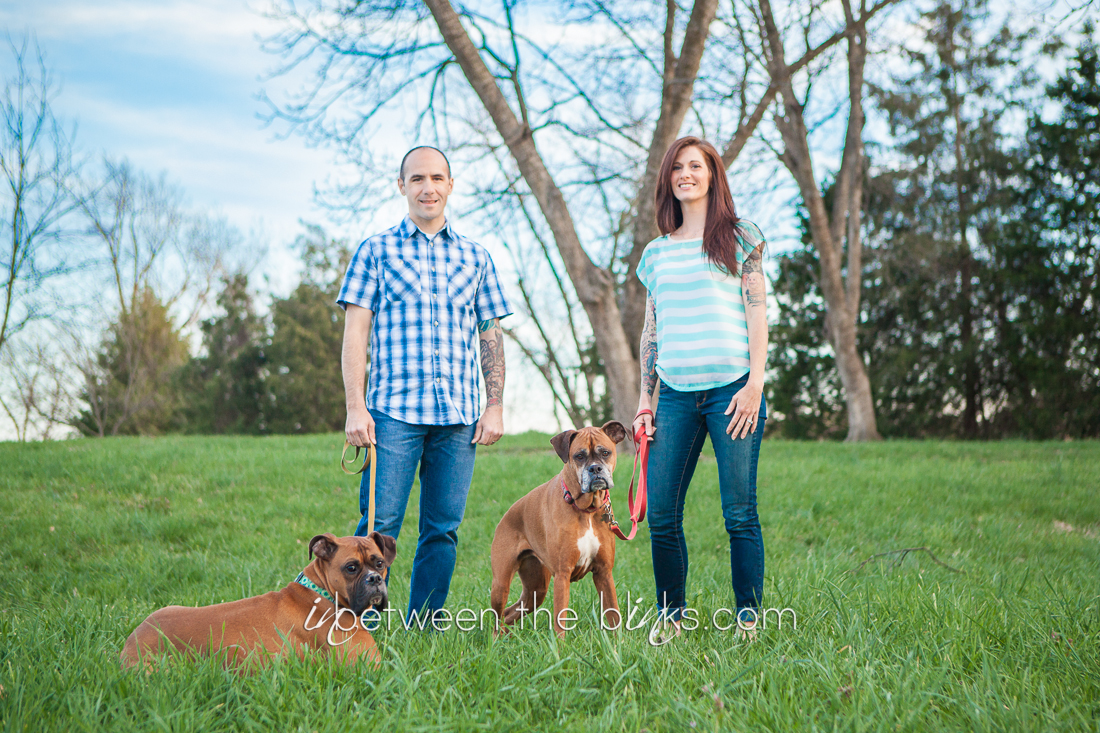 Tula (standing in this first photo) is nine years old. She is now battling degenerative myelopathy and has trouble with her back legs. She’s been doing therapy for 12 weeks to help keep her from losing her muscle tone so quickly. She did pretty well during the shoot and still had her perky happy attitude. Ruger is almost seven years old. Dan and Erica adopted him when we was just two years old from Blue Ridge Boxer Rescue. It was just four months after he had his amputation surgery.