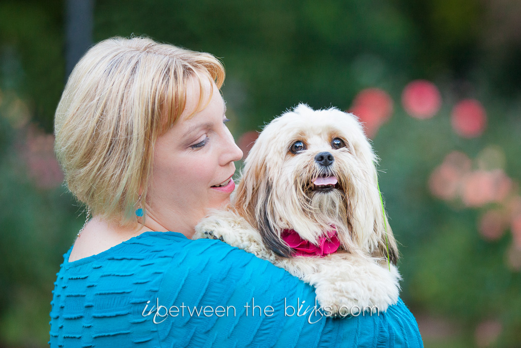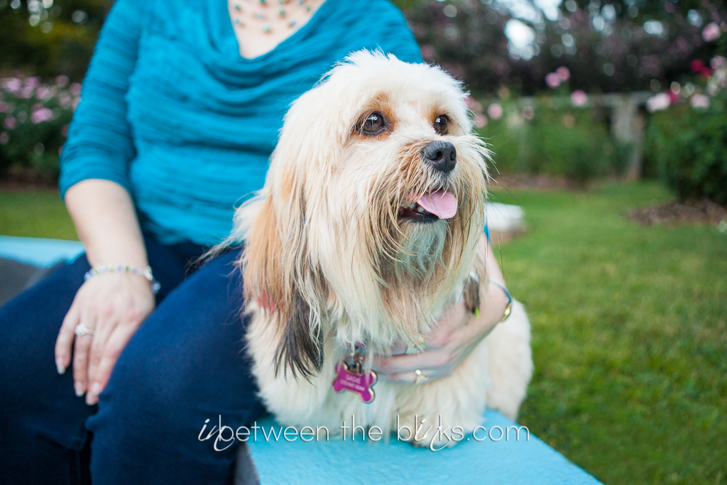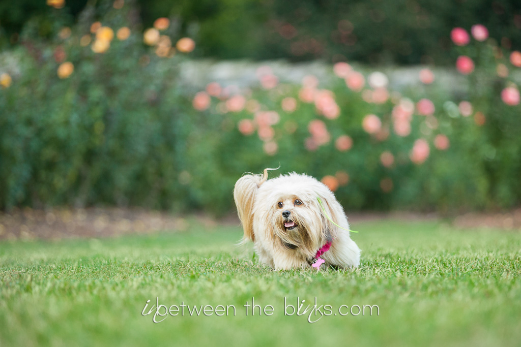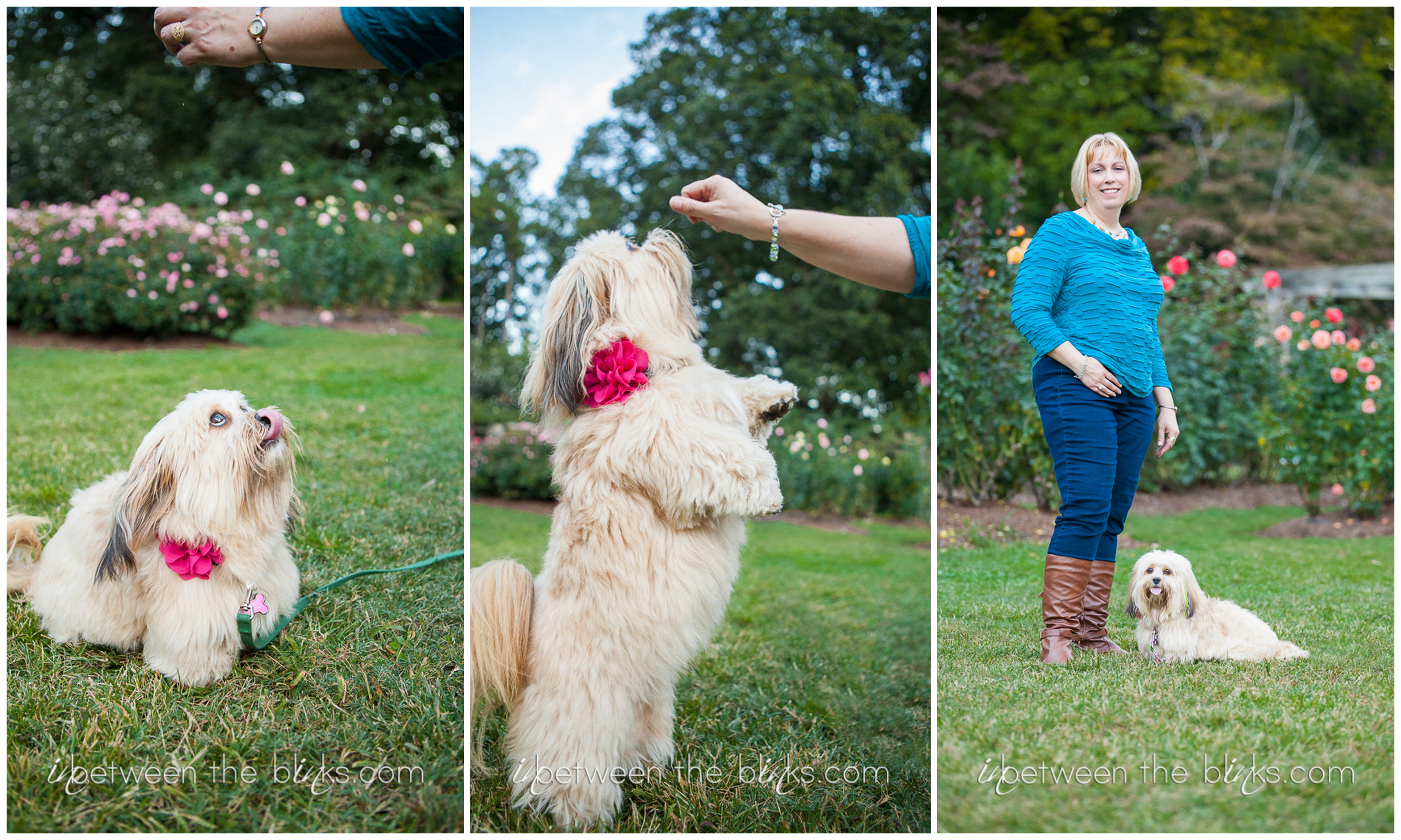 Sadie is a four-year-old Schweenie. What’s a Schweenie? It’s a mix breed combination of Shih Tzu/Min Long-haired Doxie! I first met Sadie during a mini session at Woof Gang Bakery. She was so cute so I was excited when mom emailed me to set up a full session for the fall! We met for her dog photo session at the Raleigh Rose Garden which was in full bloom. Sadie is a sassy little thing and kept me cracking up the entire time!