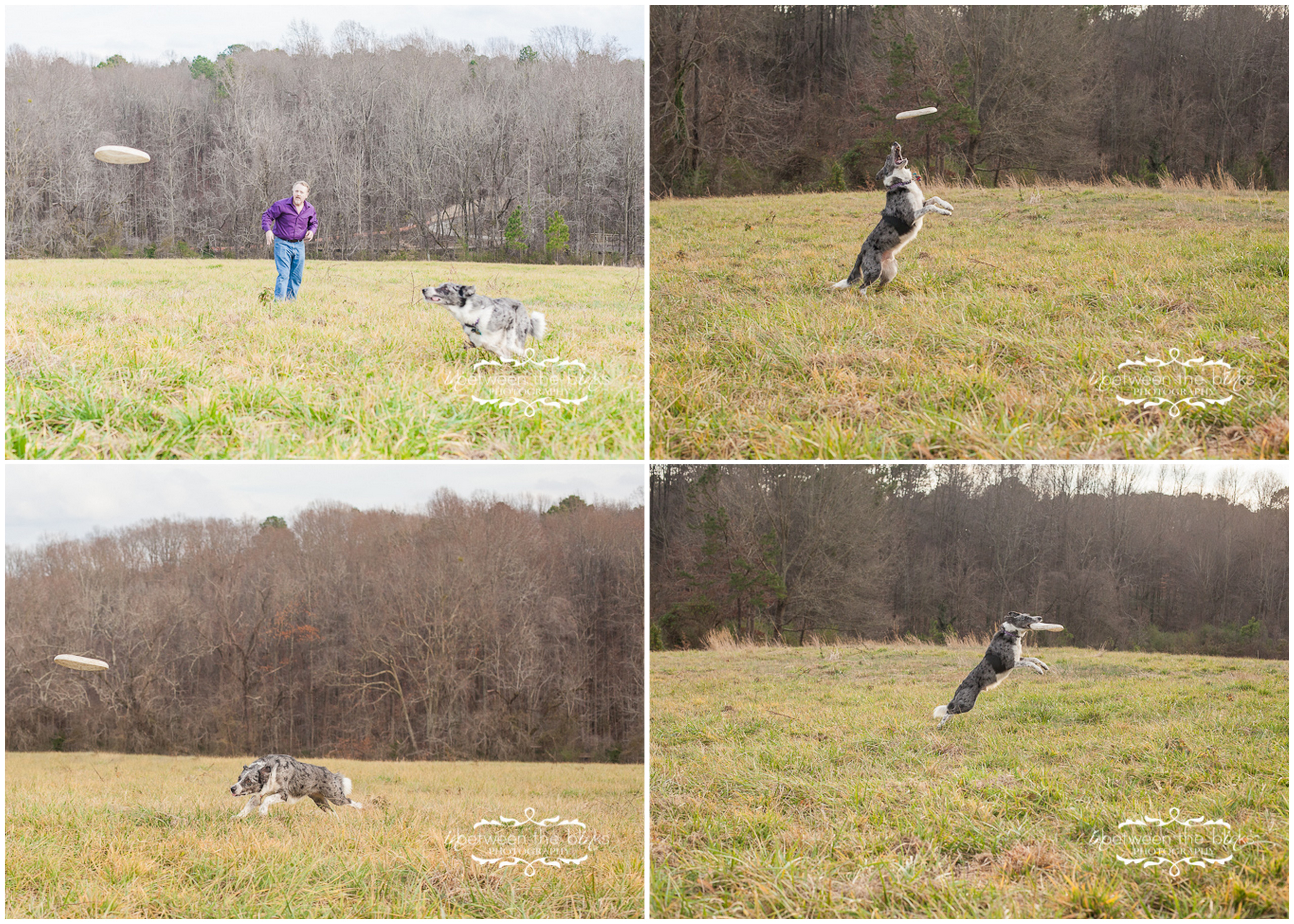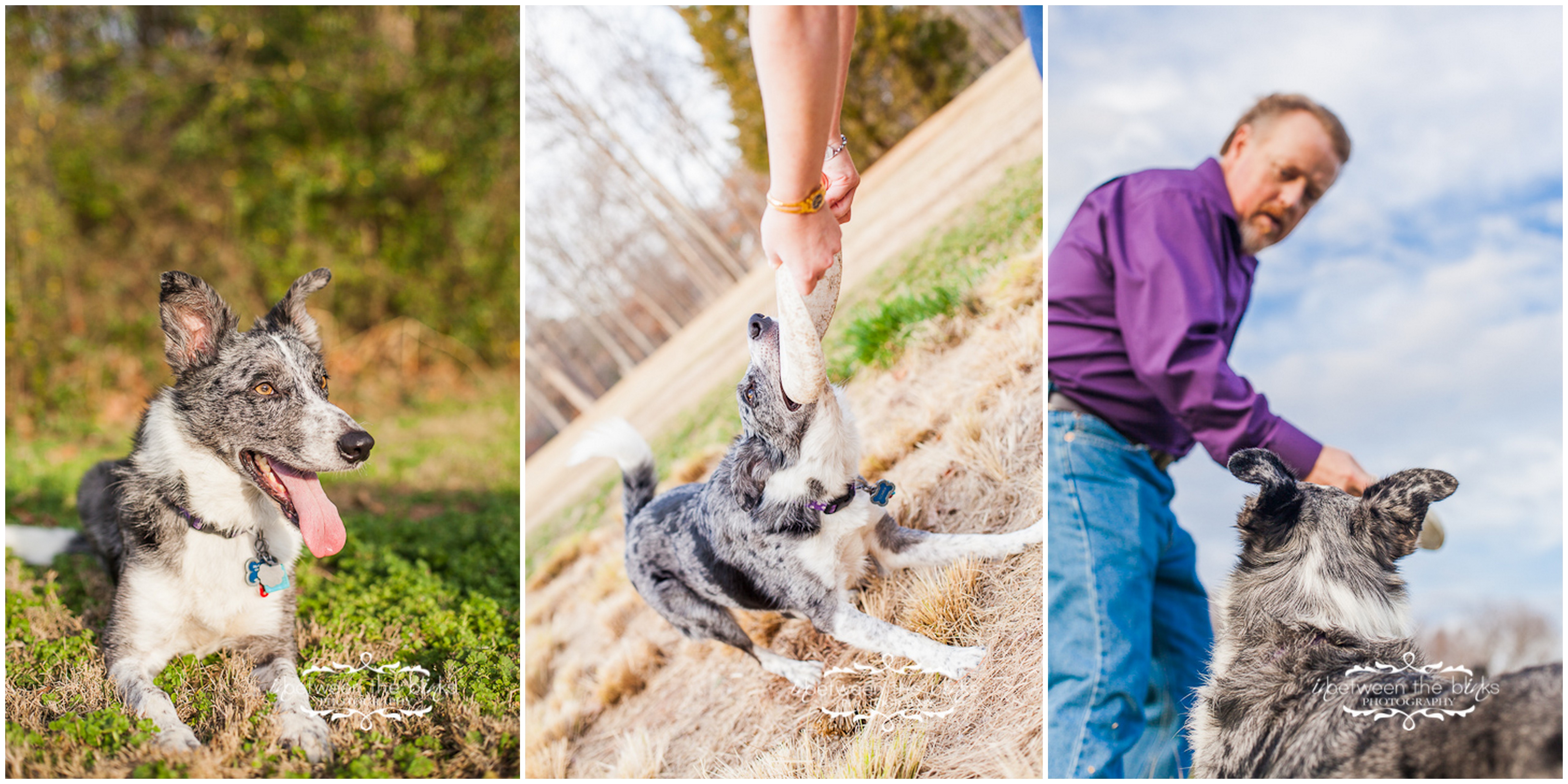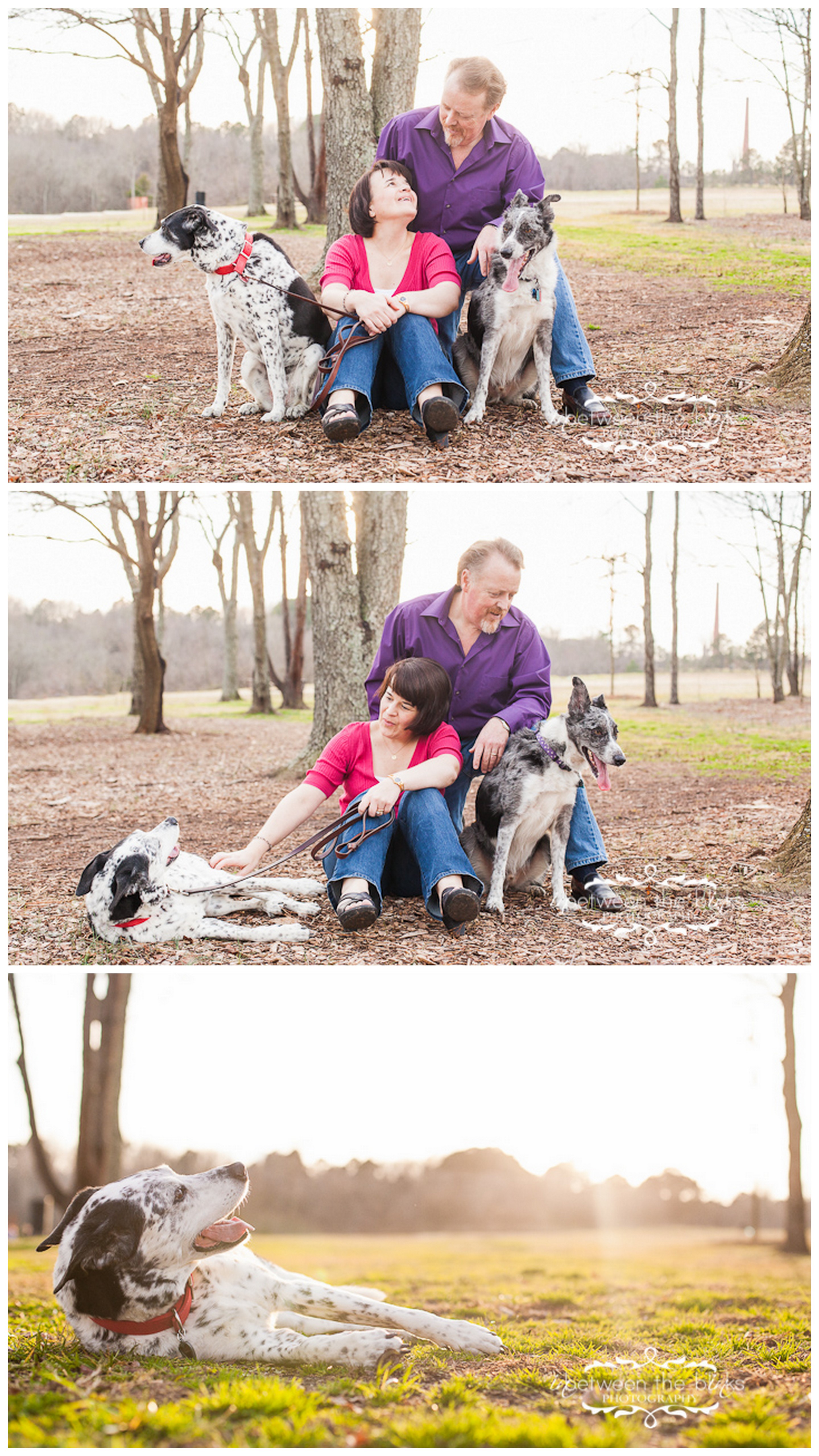 What an awesome family (not just because they are super educated about wine and used to run a wine shop…the humans that is). Jennifer surprised her hubby David with a gift certificate for the holidays! They love their two fur babies and we had the perfect day to shoot in January! Remember that Sunday when it was about 70 degrees? Yes! It was awesome. We headed to the NC Museum of Art and I think everybody else in town had the same idea! But we were able to find a few quiet spots for this awesome family! Thelma Lou is the black and white pointer/Lab mix. I would never have known she is 15 years old!!! She is just so sweet and loving and her age doesn’t slow her down too much. Gomer is five years old and a border collie rescue. He is quite the frisbee enthusiast and I was ecstatic to get some action shots of him (even though it made me want to run out and buy the 75-200 canon lens to get a little closer!) I love the casualness of these photos, especially the last three with the entire family together. The very last photo is actually the “wallpaper” on my brand new 27″ Imac computer and the photo for my 16×24 canvas sample to show to clients. I am hooked on that photo and just LOVE LOVE LOVE it! What a fun and warm January afternoon with a great family!